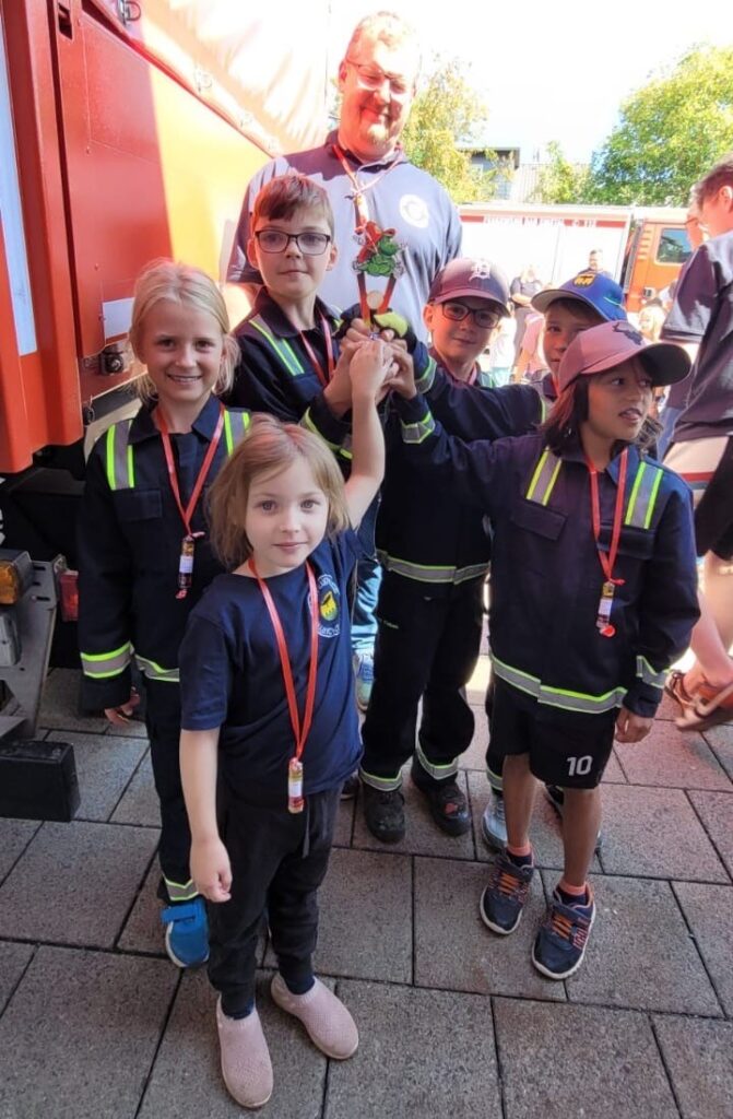 Zum Abschluss gab es dann für jede Kinderfeuerwehr noch einen Pokal. Mit viel Stolz haben wir ihn entgegengenommen. Gewonnen haben wir aber alle, weil wir gemeinsam einen tollen Tag erleben konnten.