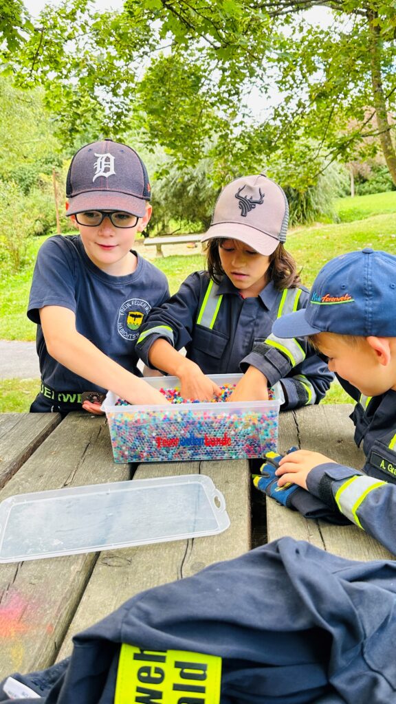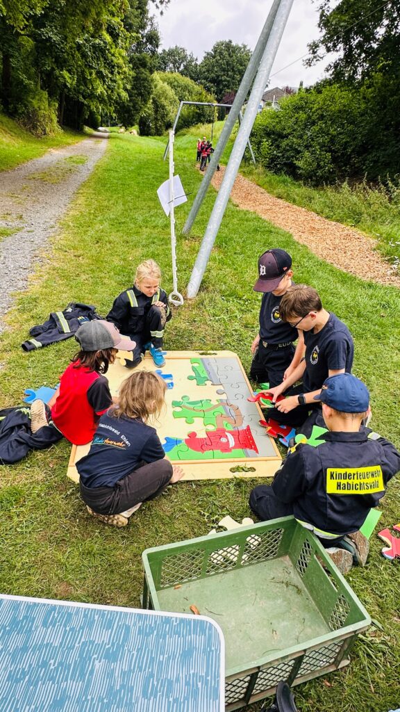 Bei leicht sonnigem, teils bewölktem Wetter und angenehmen 19 Grad erwarteten uns insgesamt 12 Stationen, die viel Spaß, Teamgeist und Geschick erforderten. Besonders spannend fanden wir die Schatzsuche im Feuerwehrauto, das Schubkarrennen und den Wassertransport mit Schwamm, bei dem es auf jeden Tropfen ankam. Auch beim Riesenpuzzle oder beim Löschhaus mussten wir als Team zusammenhalten.