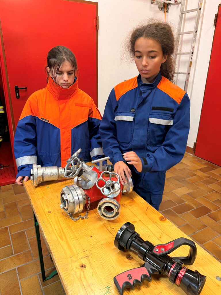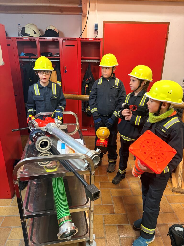 Mit voller Motivation zeigten die Nachwuchsbrandschützer, was sie in den letzten Monaten gelernt hatten. Zu den Aufgaben gehörten unter anderem das korrekte Absetzen eines Notrufs, das Anfertigen von Knoten und Stichen, das Erklären von Feuerwehrgeräten sowie kleine praktische Übungen mit dem Schlauch und Strahlrohr. Besonders beeindruckend war die Ruhe und Konzentration, mit der die Jugendlichen an jede Station herangingen – ganz so, wie es echte Feuerwehrleute tun würden.