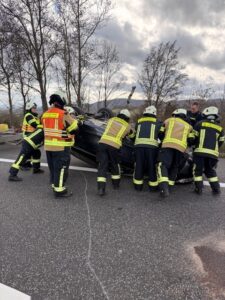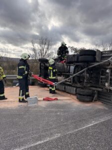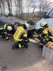 Es handelte sich um einen Verkehrsunfall auf der A44 Zierenberg Richtung Kassel. Ein Transporter mit Anhänger und drei Fahrzeugen beladen hat sich überschlagen und lag dann inkl. Anhänger quer über die Fahrbahn. Die Fahrzeuge wurden mittels Winde aufgerichtet und an den Fahrbahnrand gestellt. Die auslaufenden Betriebsstoffe wurden abgebunden . Im Anschluss wurde die Einsatzstelle an die Polizei übergeben.